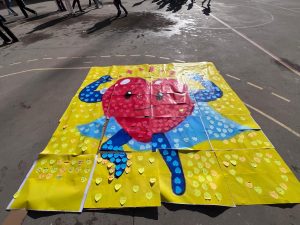 También hubo para la música en directo con Óscar Altemir y algunos alumnos mayores y para el baile con la canción “Corazones valientes” que habla del valor de dar un paso adelante ante las situaciones de injusticia.