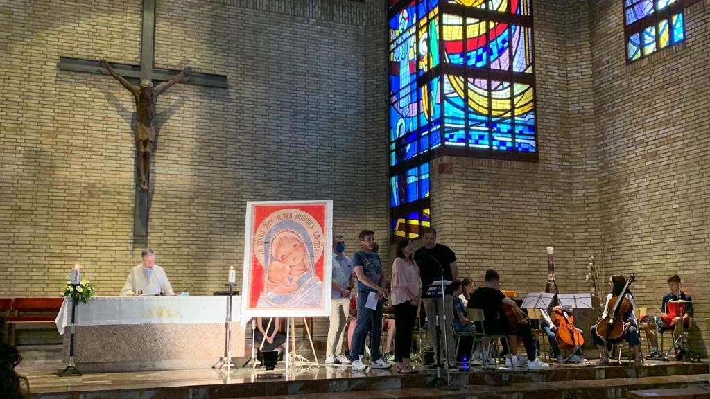 El lunes 30 de mayo hemos realizado la celebración de fin de curso y del mes de María. Ha tenido lugar en la iglesia de Santiago y han asistido todos los alumnos del centro.