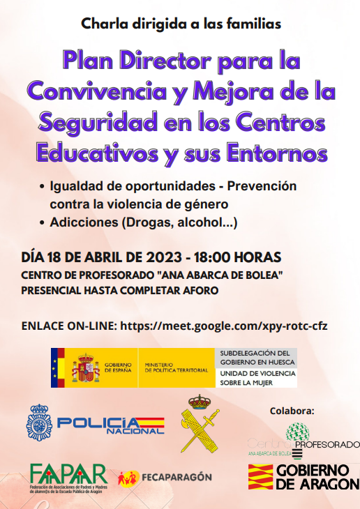 Dentro del Plan Director para la Convivencia del Ministerio del Interior se ha programado una segunda charla para las familias. Se podrá asistir presencialmente el Centro de Profesorado o seguirla por videoconferencia.