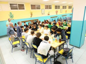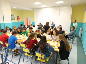 Hubo tiempo para ver algunas fotografías y vídeos de su estancia en el colegio. El encuentro acabó compartiendo una merienda con varios profesores que asistieron a la reunión.