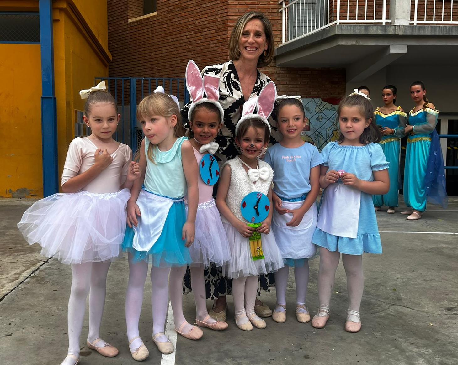 El tema elegido para los bailes de este año se inspiraba en la mágica historia escrita por Lewis Carroll, Alicia en el País de las Maravillas. El grupo de infantil nos hizo soñar con un pequeño Conejo Blanco ataviado con un reloj y que tenía mucha prisa porque llegaba tarde. La coreografía con música de la peli de Tim Burton (Danny Elfman) y de la canción Whistle Stop de Roger Miller.