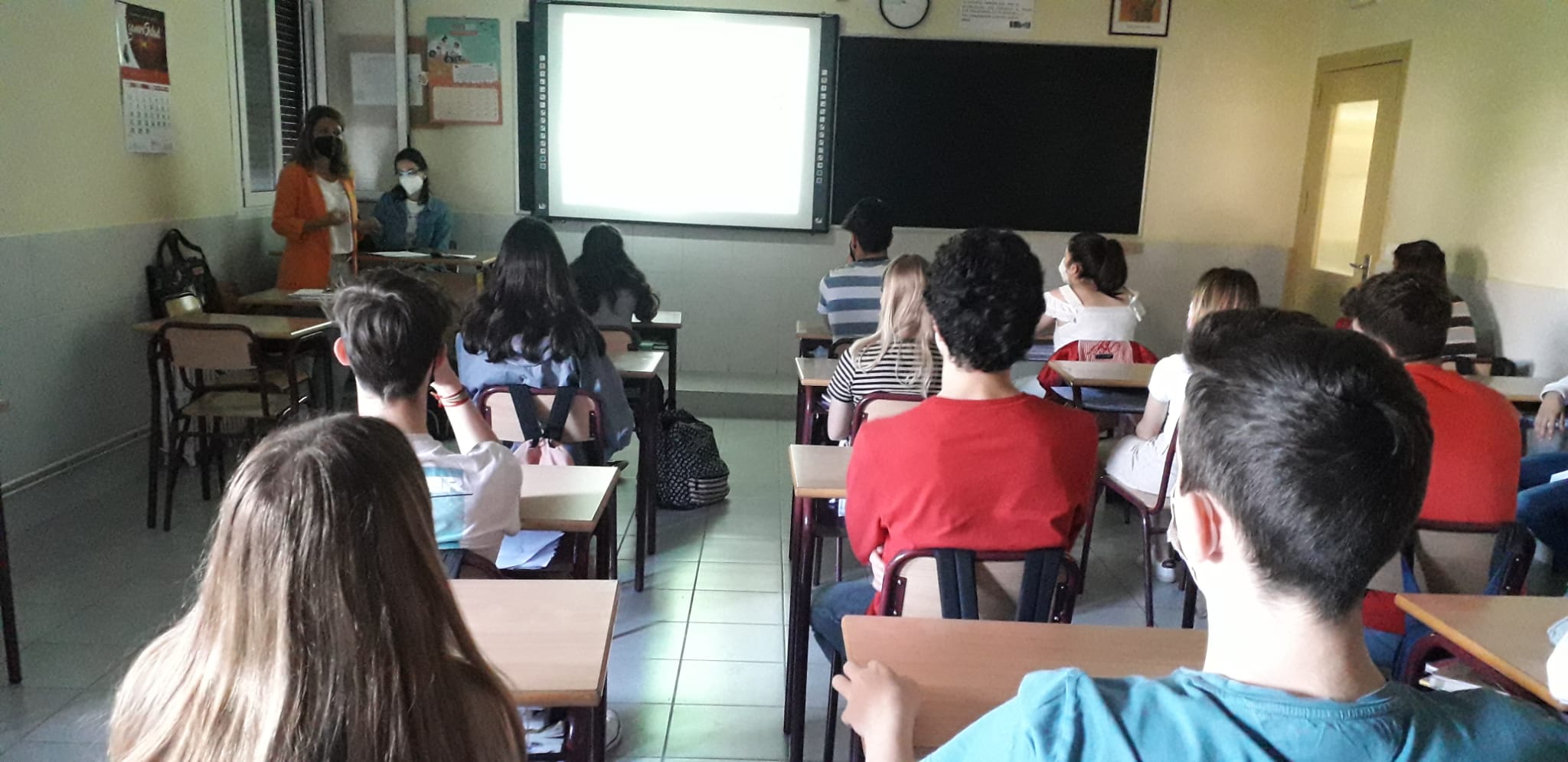 La charla también ha servido para animar a los alumnos de 4º de la ESO a seguir manteniendo las medidas sanitarias de protección como forma de que no se repitan situaciones como las que les ha tocado vivir a ellas.
