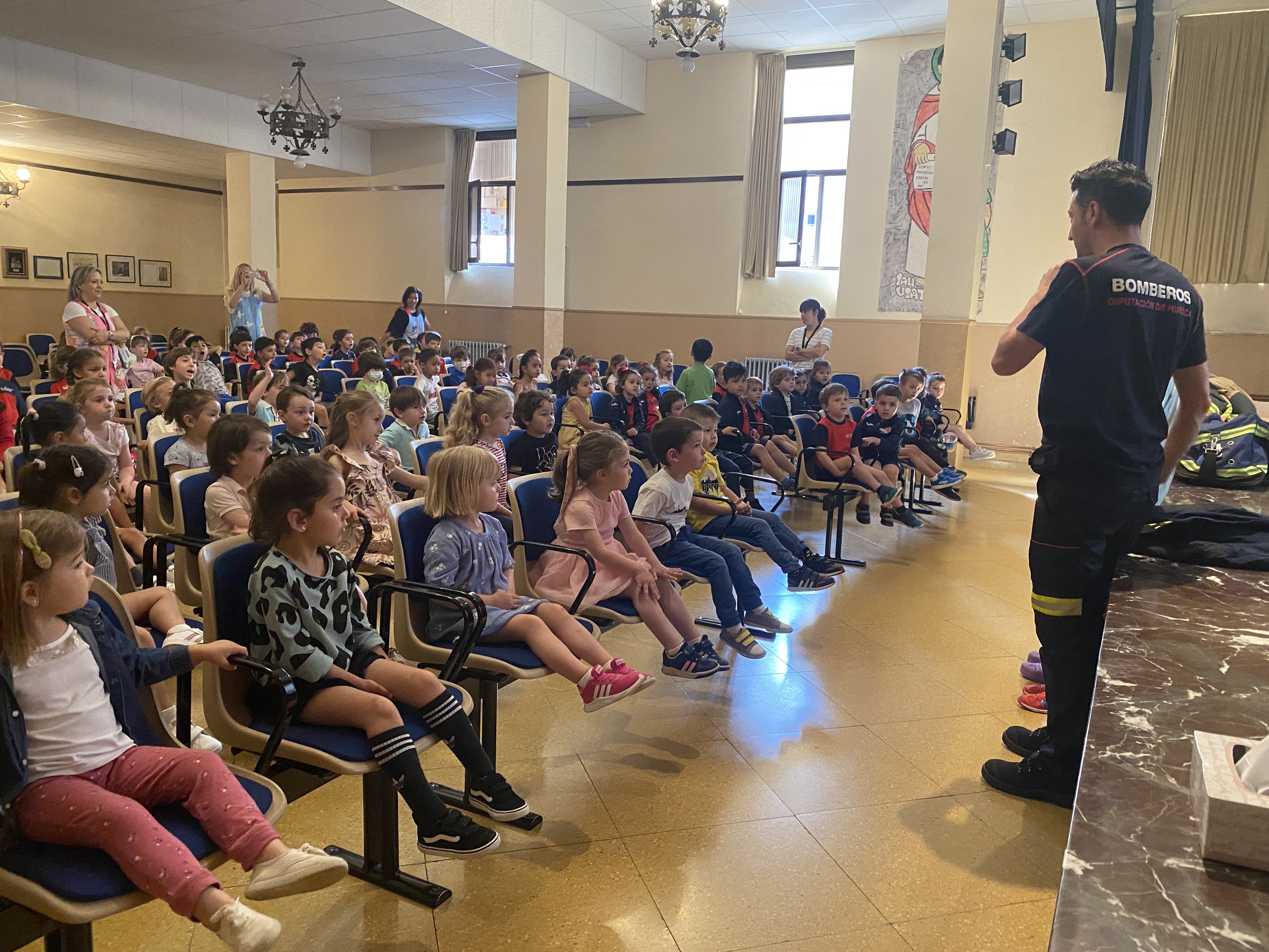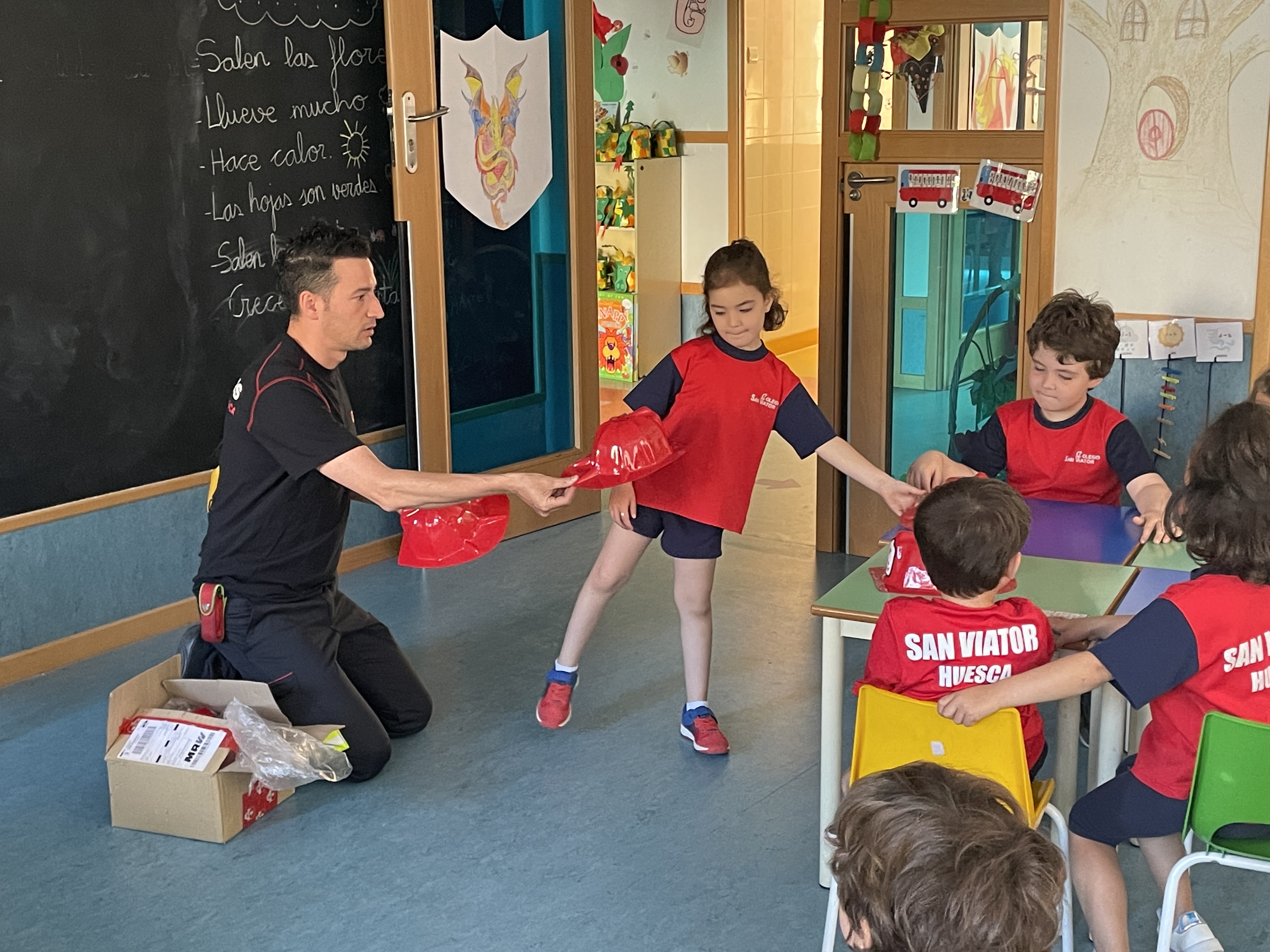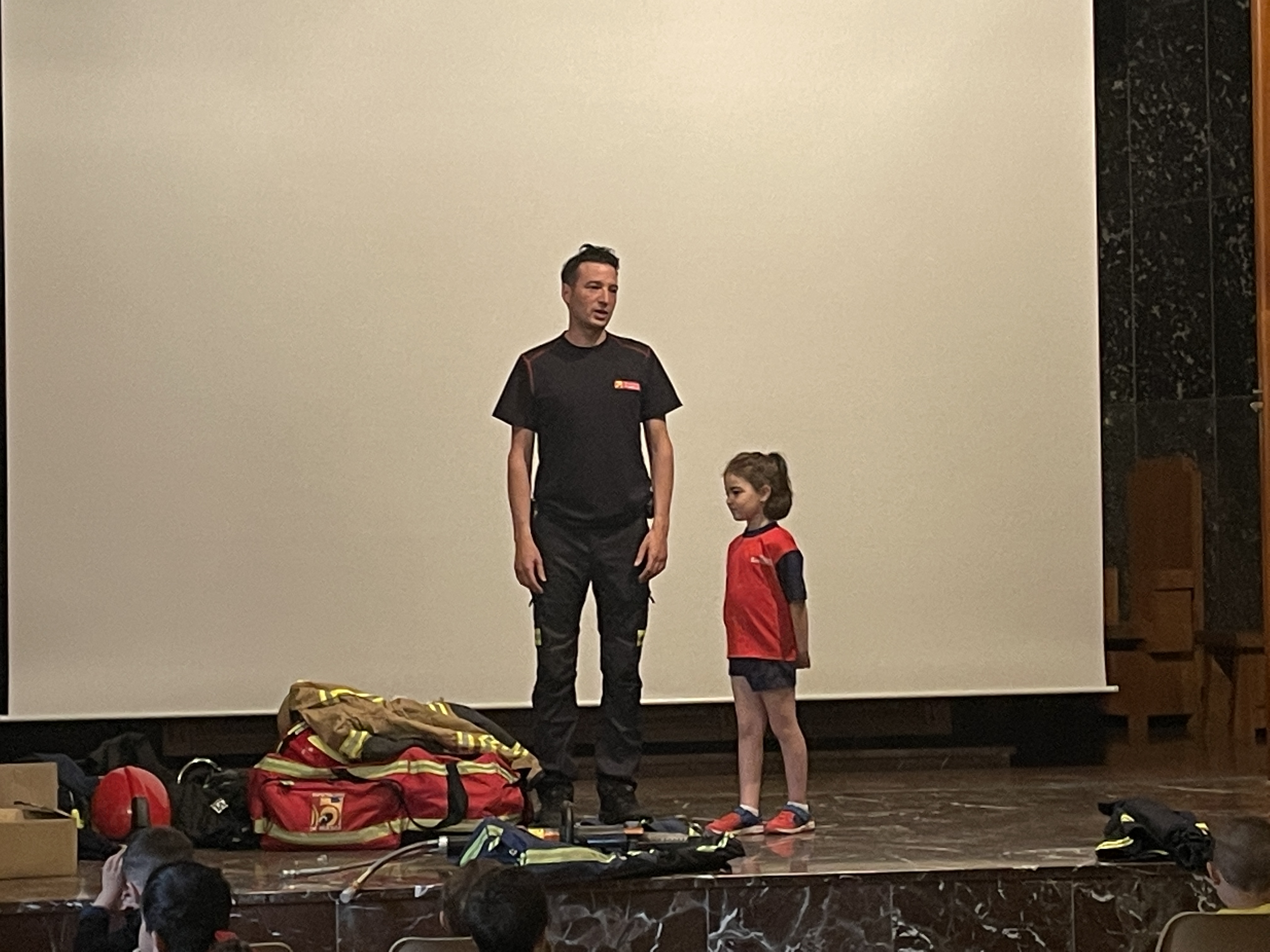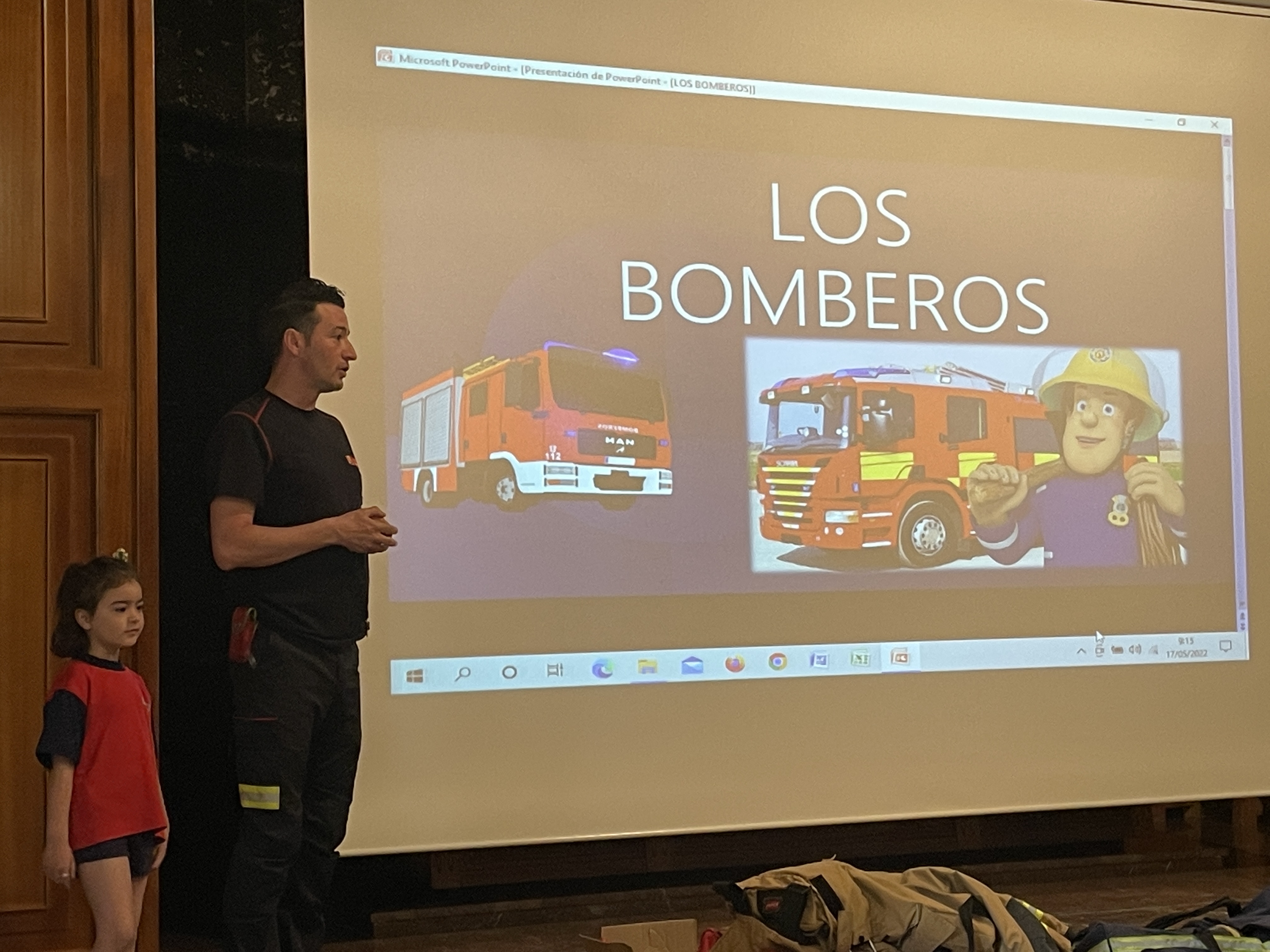Cómo no pudimos ir a visitarlos, muy amablemente el papa de Daniela de 3º de Infantil, vino a visitarnos y nos explicó cuál es la tarea de los bomberos y todos los útiles que necesitan para realizar su trabajo.