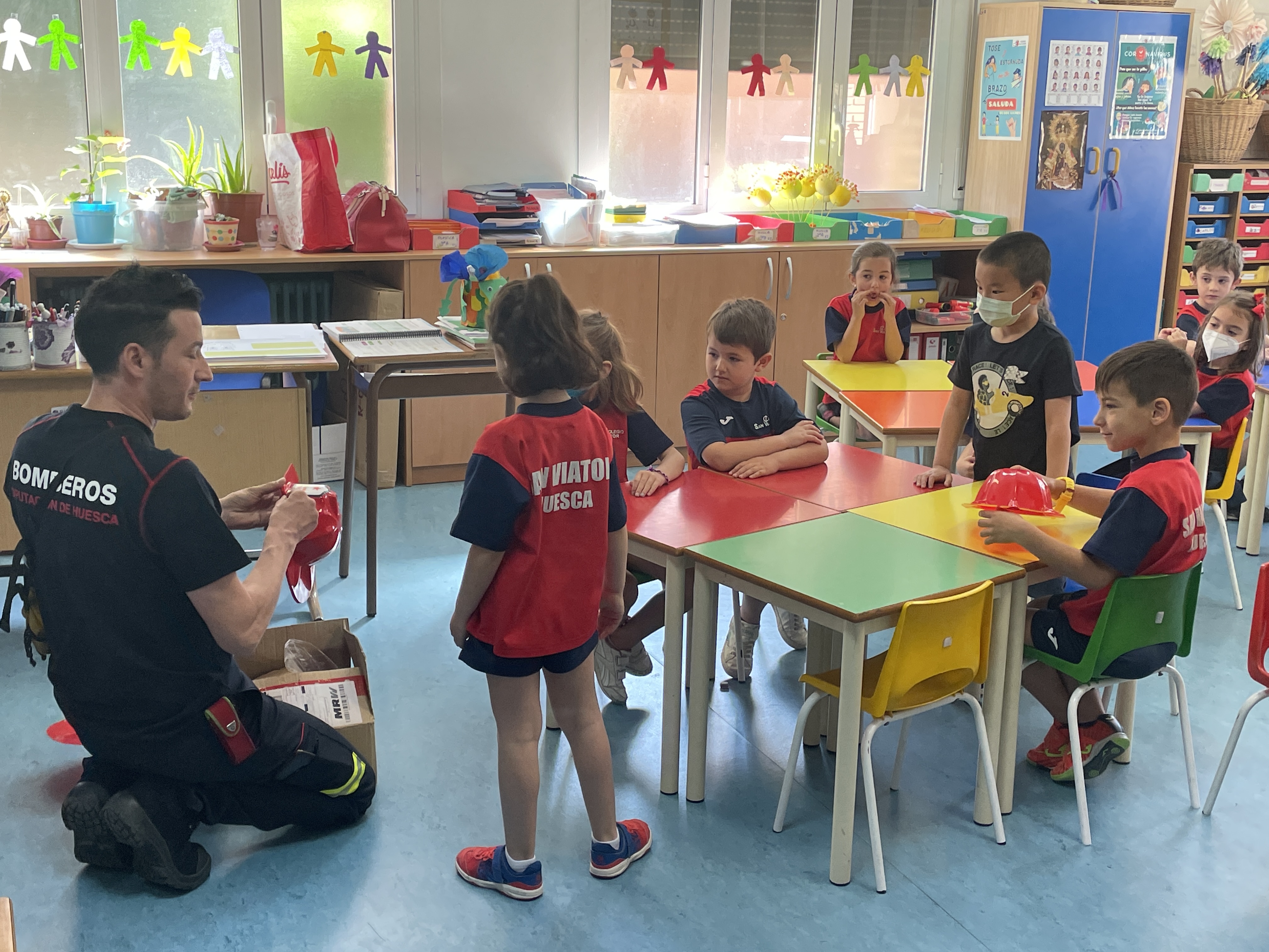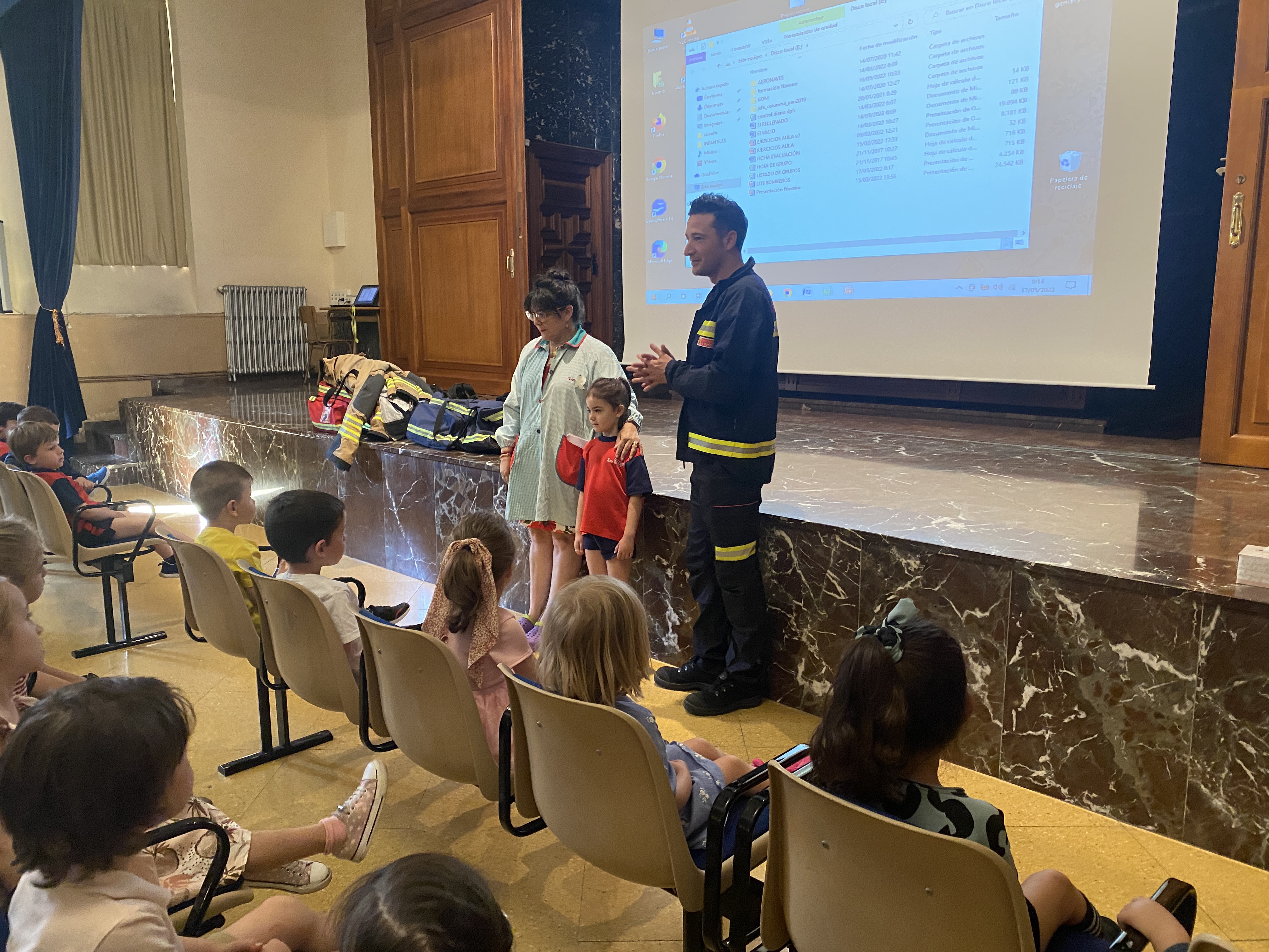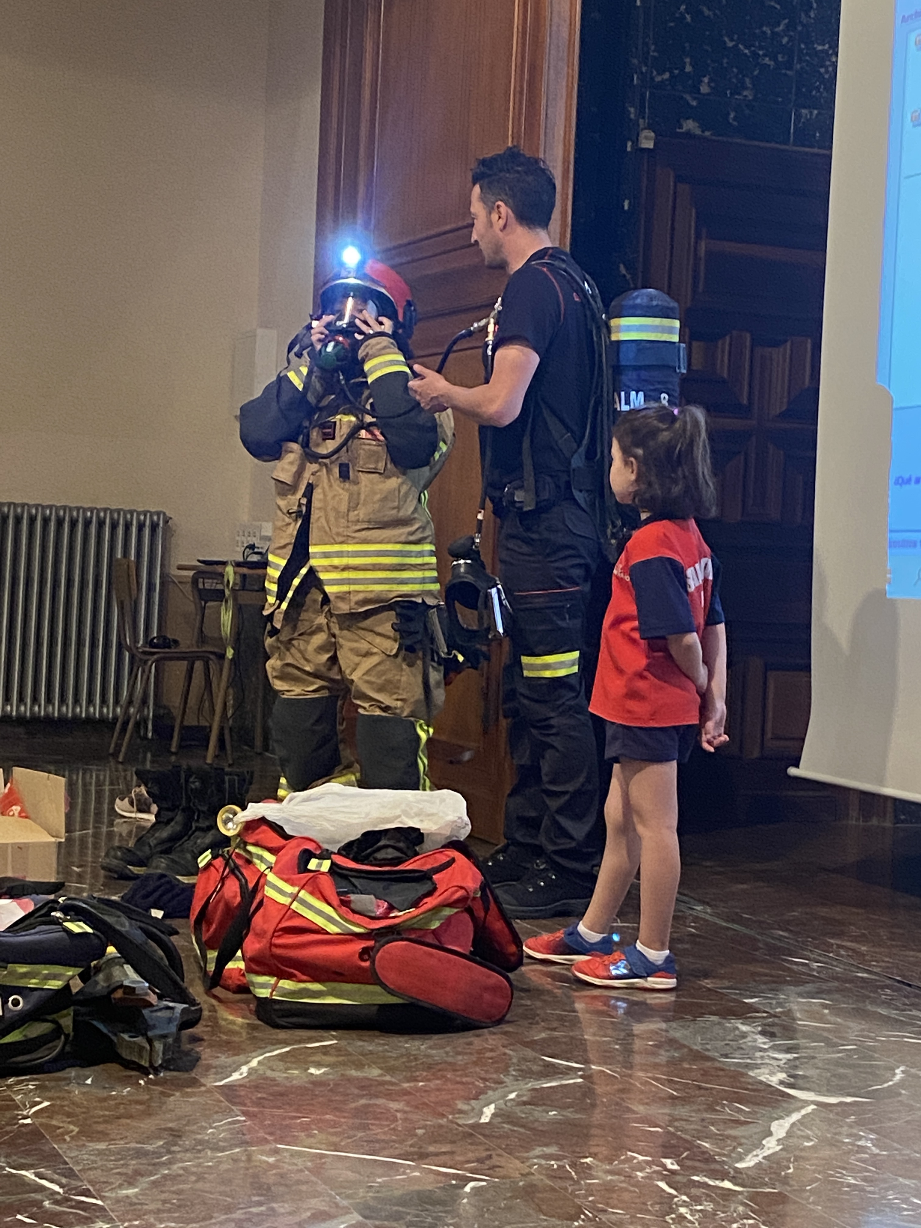 Cómo no pudimos ir a visitarlos, muy amablemente el papa de Daniela de 3º de Infantil, vino a visitarnos y nos explicó cuál es la tarea de los bomberos y todos los útiles que necesitan para realizar su trabajo.