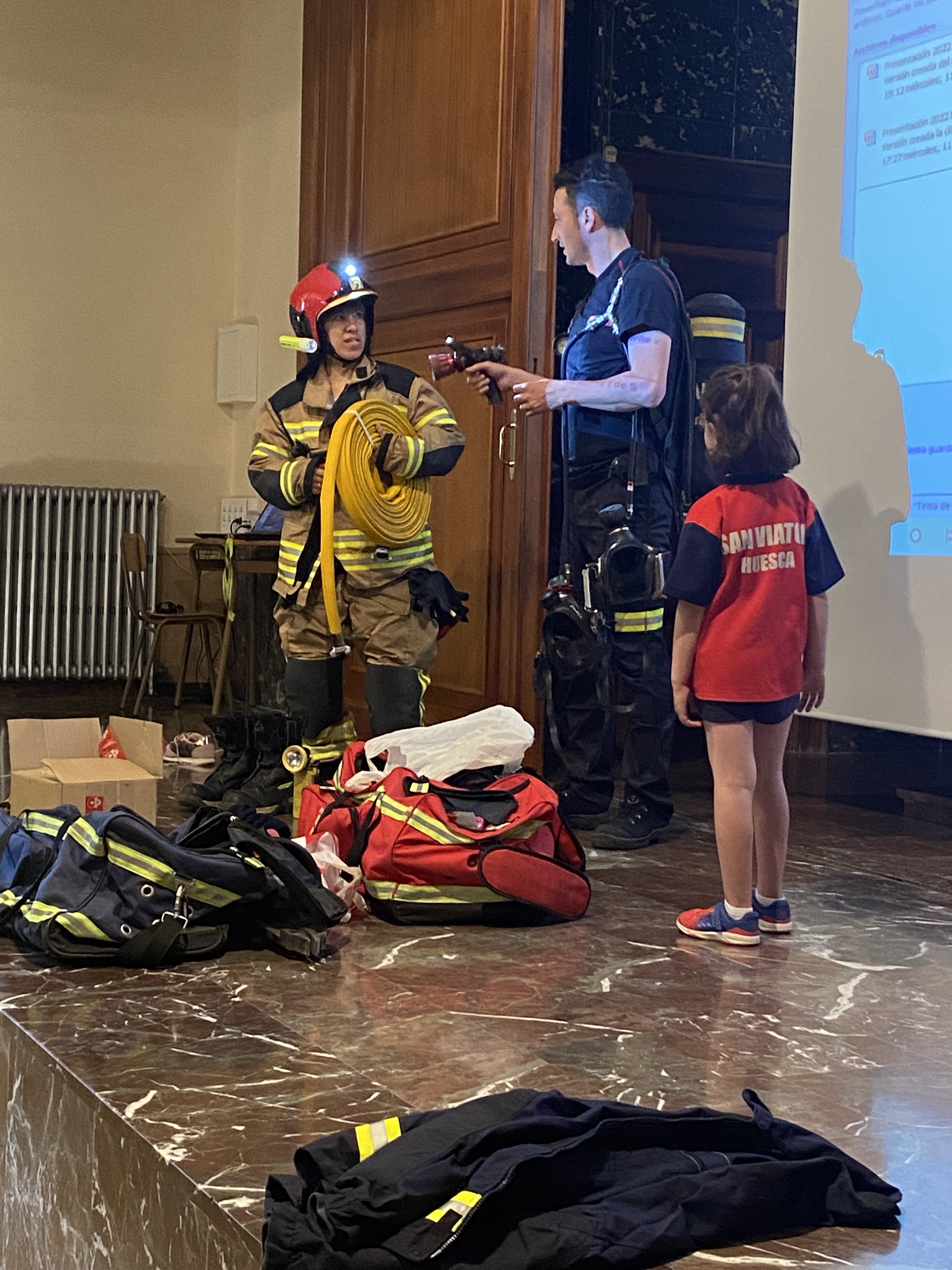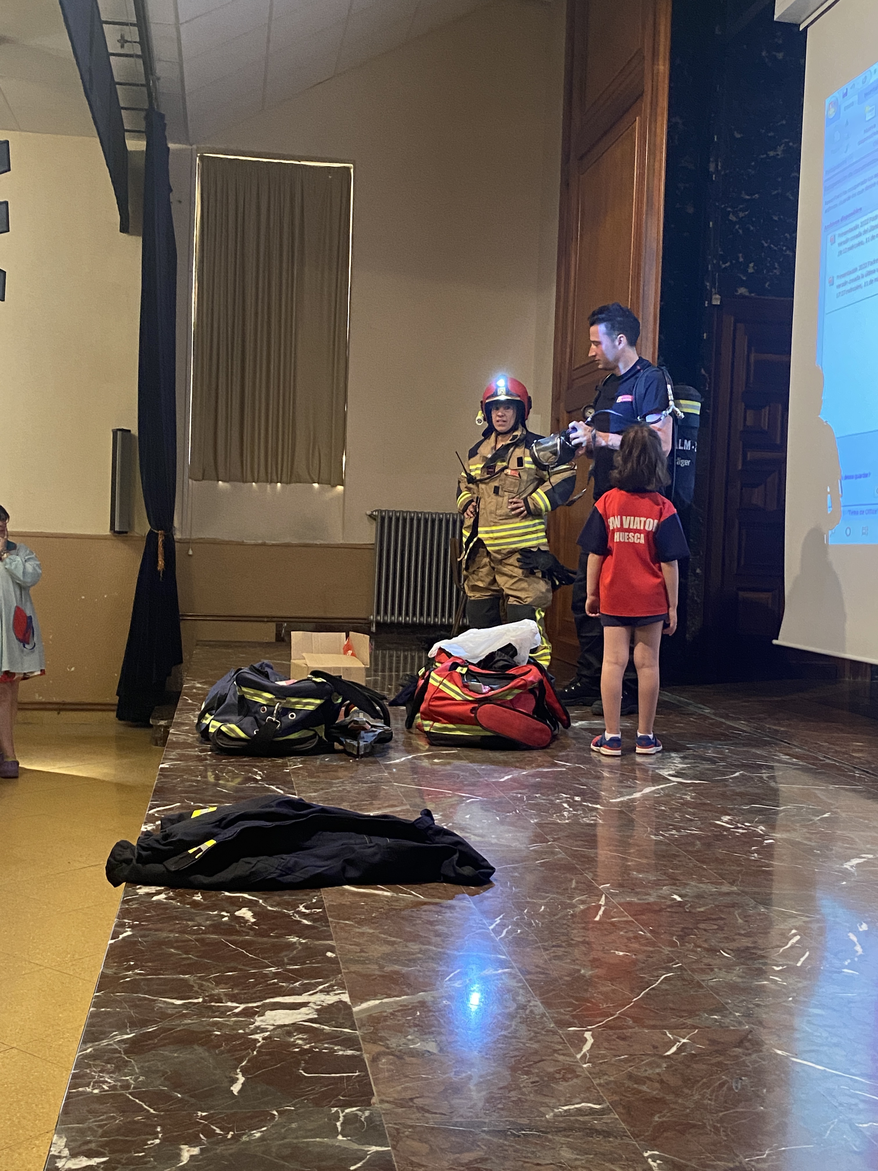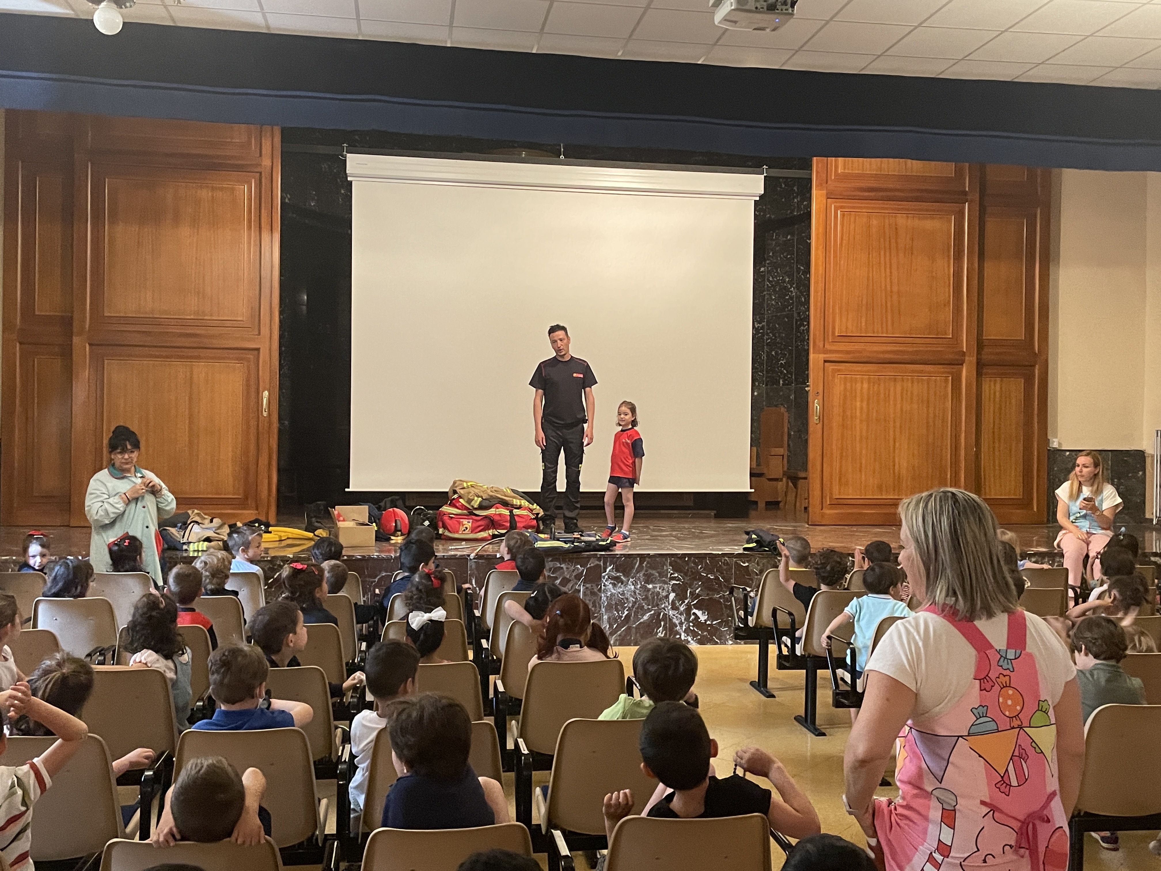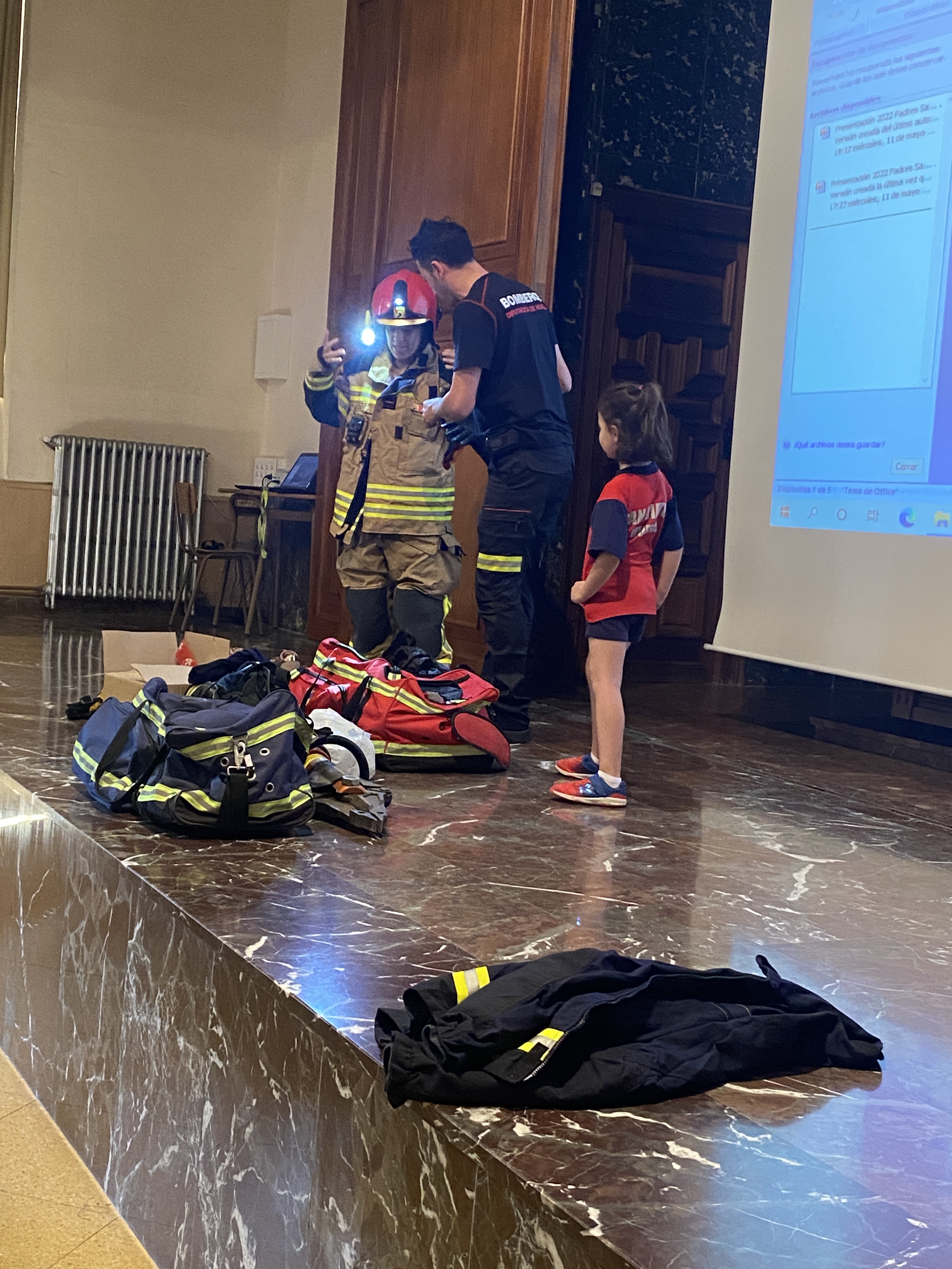 Cómo no pudimos ir a visitarlos, muy amablemente el papa de Daniela de 3º de Infantil, vino a visitarnos y nos explicó cuál es la tarea de los bomberos y todos los útiles que necesitan para realizar su trabajo.