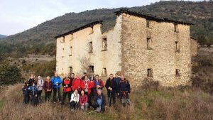 Poca luz para las fotos pero agradable temperatura para la marcha. Poco a poco se fueron cumpliendo los hitos del recorrido: Pardina de Acaso, Santa María de Belsué, Lúsera, embalse de Belsué (vacío pese a los caudalosos aportes de los «´lúmenes») y finalmente el encaramado pueblo de Belsué, final de la ruta.